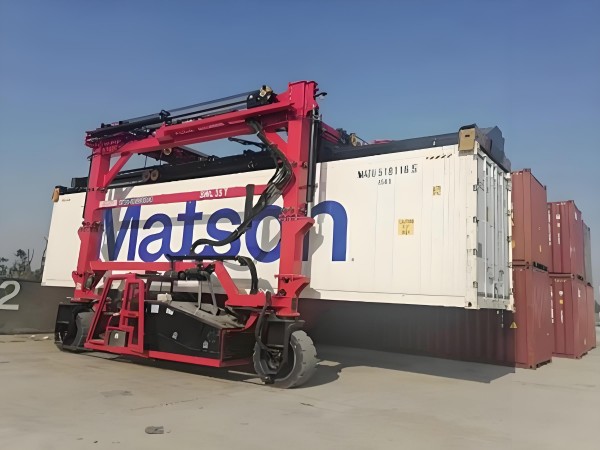 广西贵港集装箱跨运车销售厂家生产的集装箱跨运车是一种集抓取、运输、堆垛功能于一体的门型跨骑式搬运设备,其综合特点体现在结构、功能、性能和应用等多个维度: